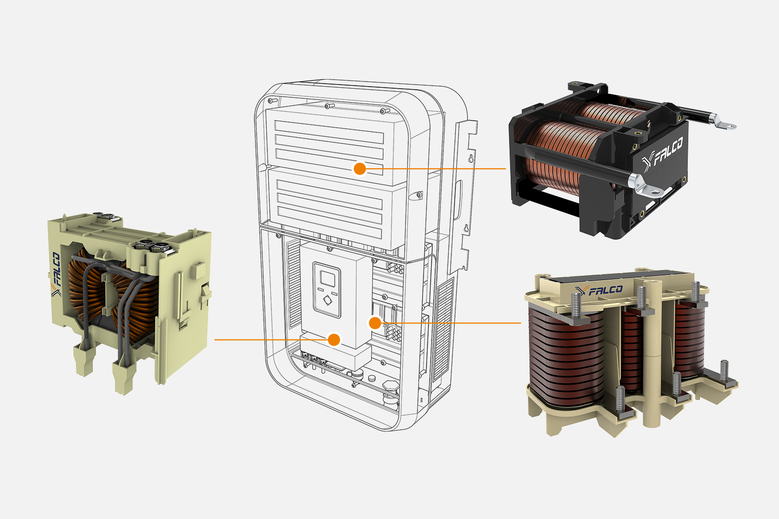 Below is a block diagram of a Solar String Inverter where electromagnetic components are key for the overall dimensions, cost, and efficiency.